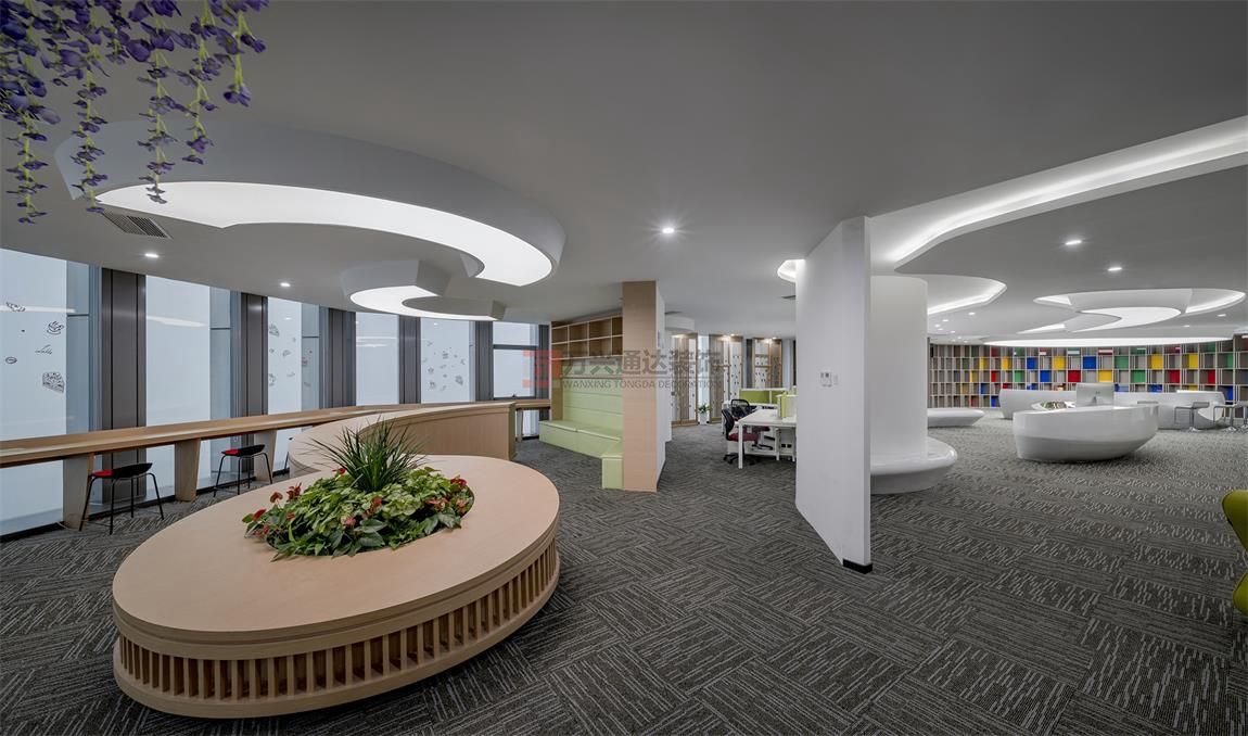 辦公室裝修公司案例:整體辦公空間設(shè)(shè)計(jì)(jì)中,大氣與細(xì)(xì)致并存,將設(shè)(shè)計(jì)(jì)與藝術(shù)(shù)結(jié)(jié)合。設(shè)(shè)計(jì)(jì)理念: 室內(nèi)(nèi)設(shè)(shè)計(jì)(jì)元素均交織凝聚于行云流水的曲線(xiàn)流動(dòng)空間,設(shè)(shè)計(jì)(jì)表現(xiàn)(xiàn)形式不受拘束,每個(gè)(gè)空間都有自己特殊的弧度,致力于搭建“創(chuàng)(chuàng)新+智能+生態(tài)(tài)”的辦公環(huán)(huán)境。